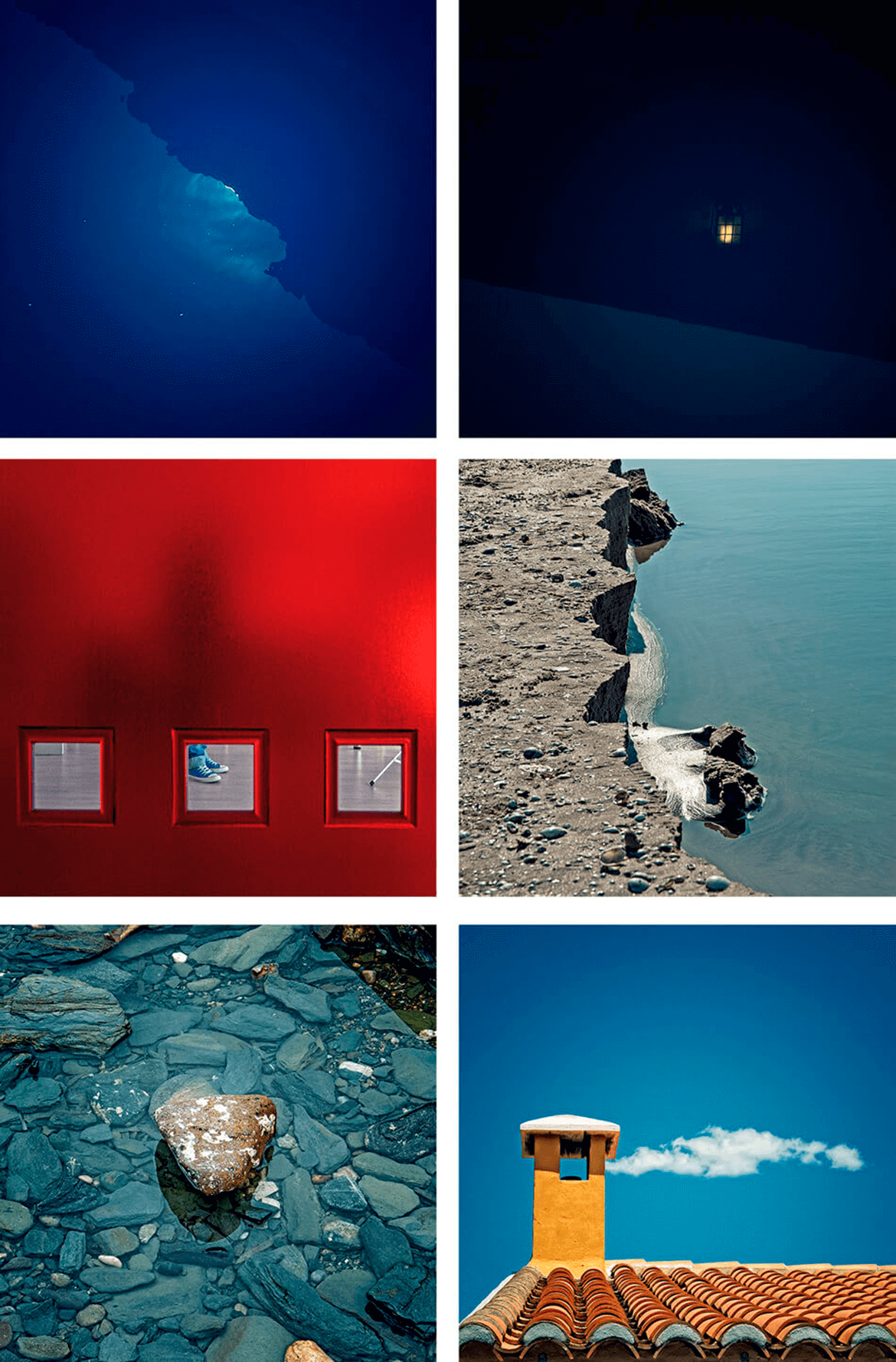 From left to right: Luz líquida (2013), S/T (2014), Quién te espera al otro lado (2015), Acantilados en miniatura (2008), La isla mínima (2013), Los ojos con los que miras (2014). © Bernat Gutiérrez